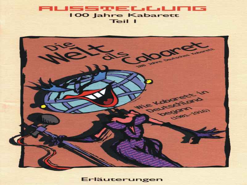 Am 18. Januar 2001 feierte das deutsche Kabarett seinen 100. Geburtstag. Dies nahm das Kabarettarchiv zum Anlass die Geschichte des Kabaretts in eine Ausstellung wieder lebendig werden zu lassen. Der erste Teil der Ausstellung „Die Welt als Cabarett“ umfasst den Zeitraum von 1901 bis 1916. Mit 25 Tafeln wird an die großen Namen des deutschen Kabaretts erinnert: Ludwig Thoma, Christian Morgenstern, Frank Wedekind und Hugo Ball. Lebendig werden diese Größen durch viele Bilder und Fotographien und natürlich durch Zitate.